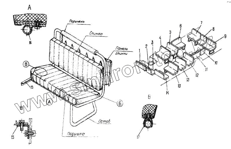 Каталог запасных частей к технике: ПАЗ-3205-110. Сиденья пассажирские