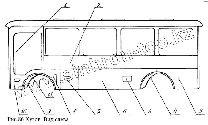 Каталог запасных частей к технике: ПАЗ-3205. Кузов. Вид слева