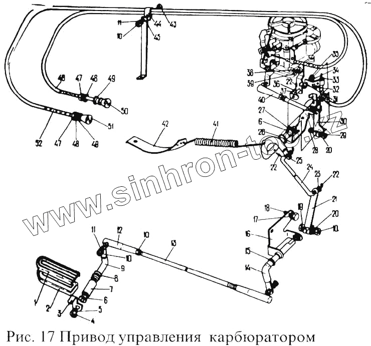 Каталог запасных частей к технике: ПАЗ-3205. Привод управления карбюратором