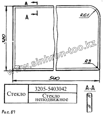Каталог запасных частей к технике: ПАЗ-3205. Стекло неподвижное