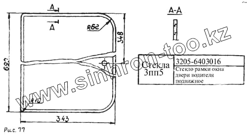 Каталог запасных частей к технике: ПАЗ-3205. Стекло рамки окна двери водителя подвижное
