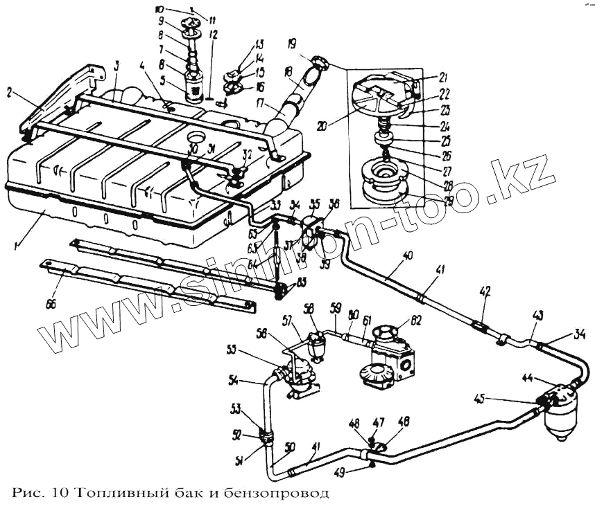 Каталог запасных частей к технике: ПАЗ-3205. Топливный бак и бензопровод