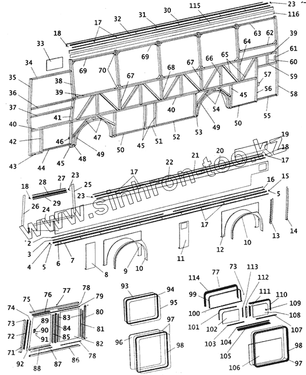 Каталог запасных частей к технике: ПАЗ-4230. Боковина левая с остеклением