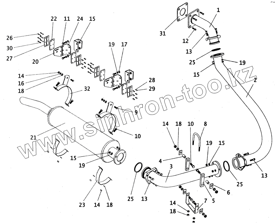 Каталог запасных частей к технике: ПАЗ-4230. Глушитель с трубами