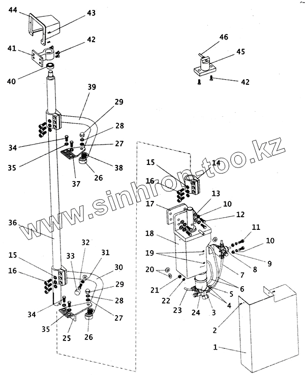 Каталог запасных частей к технике: ПАЗ-4230. Механизм открывания одностворчатой пассажирской двери с трубопроводами
