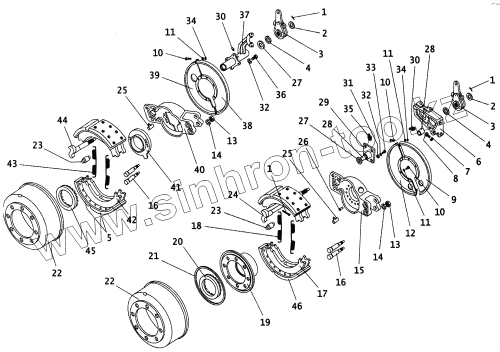 Каталог запасных частей к технике: ПАЗ-4230. Тормозные механизмы передних и задних колес