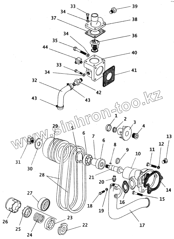 Каталог запасных частей к технике: ПАЗ-4230. Водяной насос и термостат