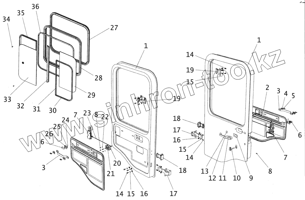 Каталог запасных частей к технике: ПАЗ-4234. Дверь водителя с остеклением