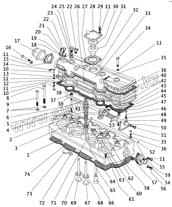 Каталог запасных частей к технике: ПАЗ-4234. Головка цилиндров, клапаны и толкатели