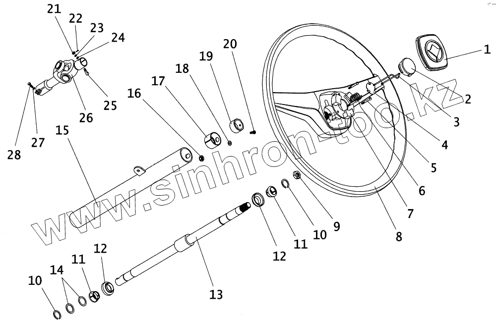 Каталог запасных частей к технике: ПАЗ-4234. Колонка рулевого управления и рулевое колесо