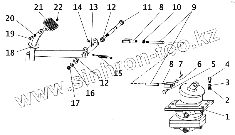Каталог запасных частей к технике: ПАЗ-4234. Механизм привода рабочих тормозов