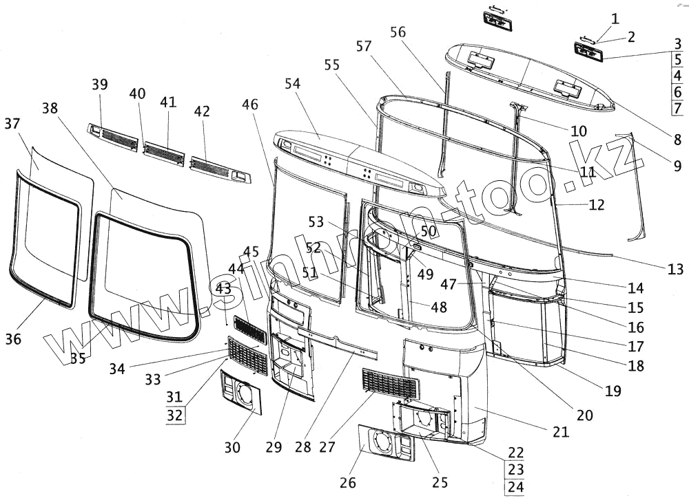 Каталог запасных частей к технике: ПАЗ-4234. Передок в сборе с остеклением и вентиляцией