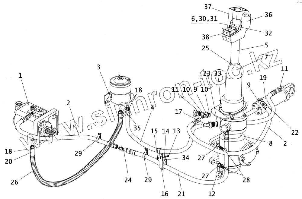 Каталог запасных частей к технике: ПАЗ-4234. Рулевое управление с гидроусилителем и трубопроводами