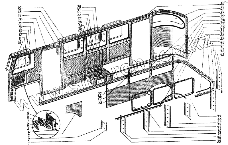 Каталог запасных частей к технике: ПАЗ-672М. Боковина правая