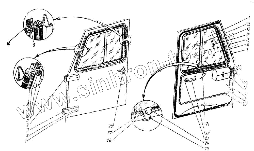 Каталог запасных частей к технике: ПАЗ-672М. Дверь кабины водителя