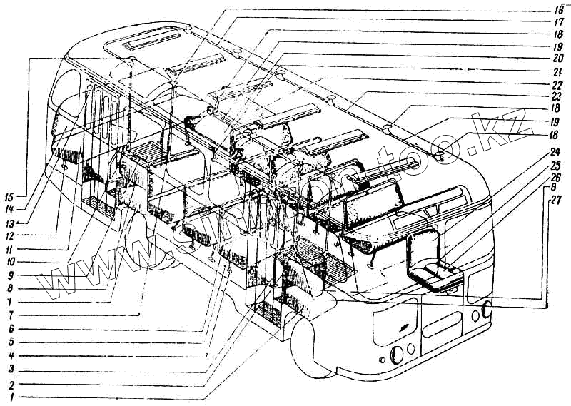 Каталог запасных частей к технике: ПАЗ-672М. Сиденья, поручни, подножки