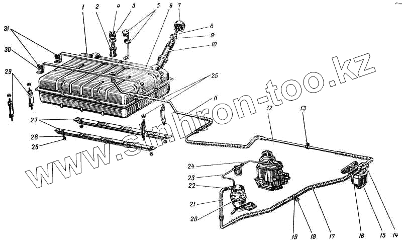 Каталог запасных частей к технике: ПАЗ-672М. Топливный бак и топливопровод