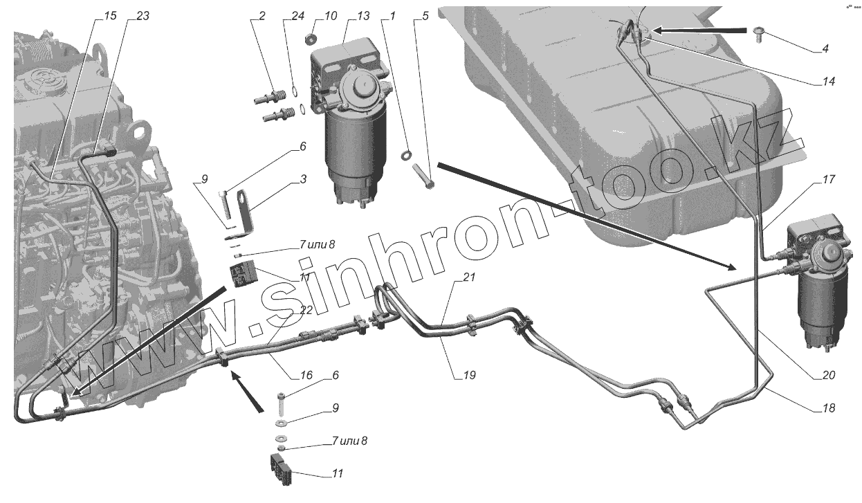 Каталог запасных частей к технике: ПАЗ ВЕКТОР NEXT С40R13 шасси. C40R13-1104001. Установка топливопроводов
