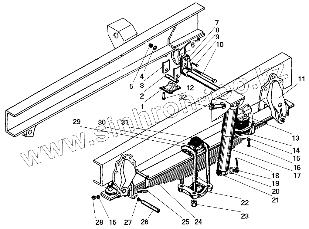 Каталог запасных частей к технике: УралАЗ СПТС УРАЛ-32552. Передняя подвеска