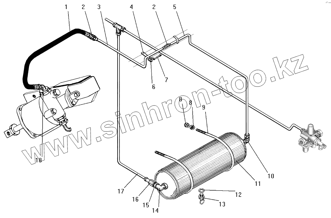 Каталог запасных частей к технике: УралАЗ СПТС УРАЛ-32552. Пневмопривод выключения сцепления
