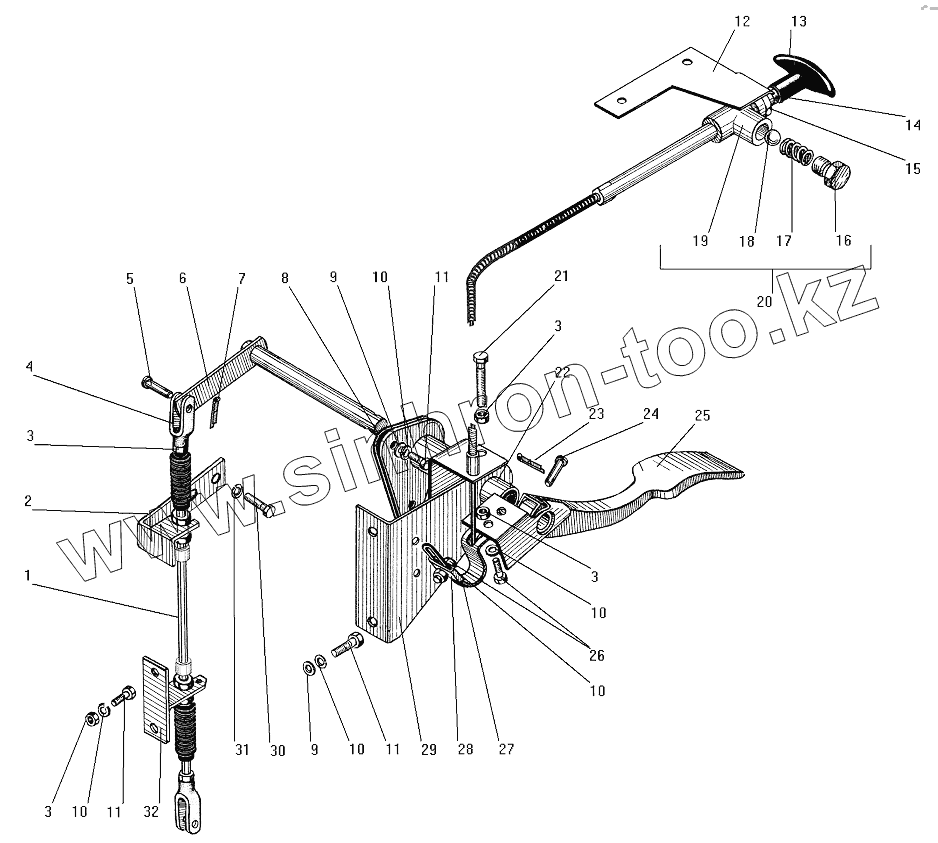 Каталог запасных частей к технике: УралАЗ СПТС УРАЛ-32552. Привод акселератора