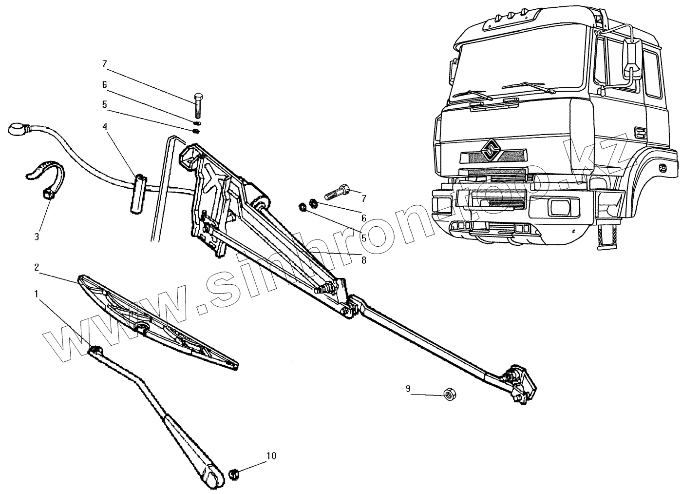 Каталог запасных частей к технике: УралАЗ СПТС УРАЛ-32552. Стеклоочиститель