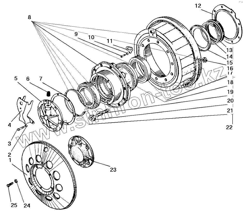 Каталог запасных частей к технике: УралАЗ СПТС УРАЛ-32552. Ступица колеса и тормозной барабан
