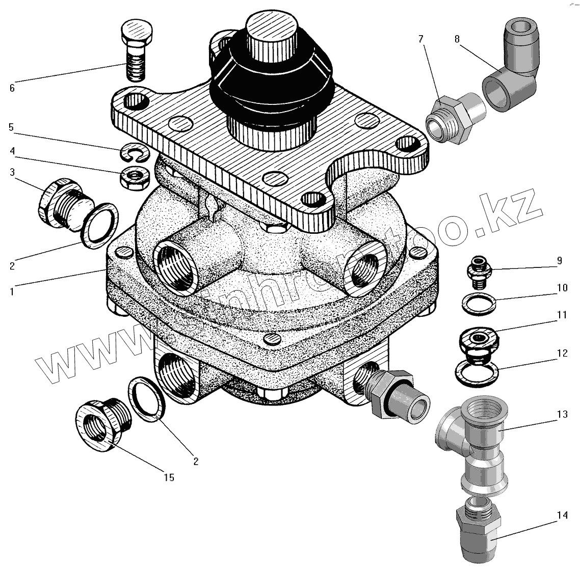 Каталог запасных частей к технике: УралАЗ СПТС УРАЛ-32552. Тормозной двухсекционный кран