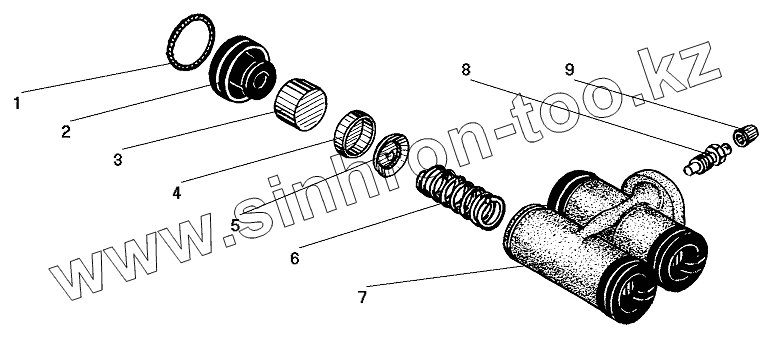 Каталог запасных частей к технике: УралАЗ СПТС УРАЛ-32552. Цилиндр колесный в сборе