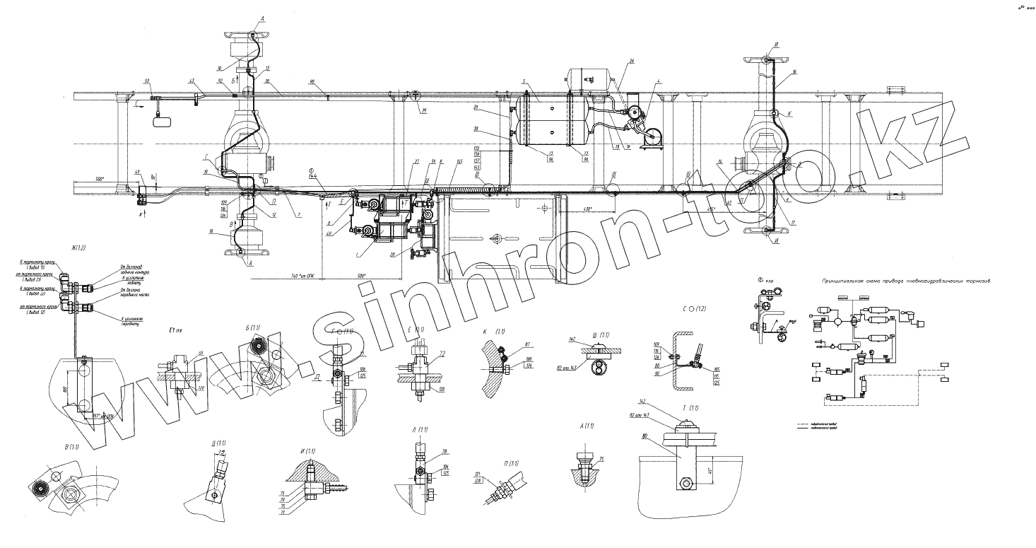 Каталог запасных частей к технике: УралАЗ СПТС УРАЛ-32552. Установка агрегатов гидропневматического привода рабочих тормозов