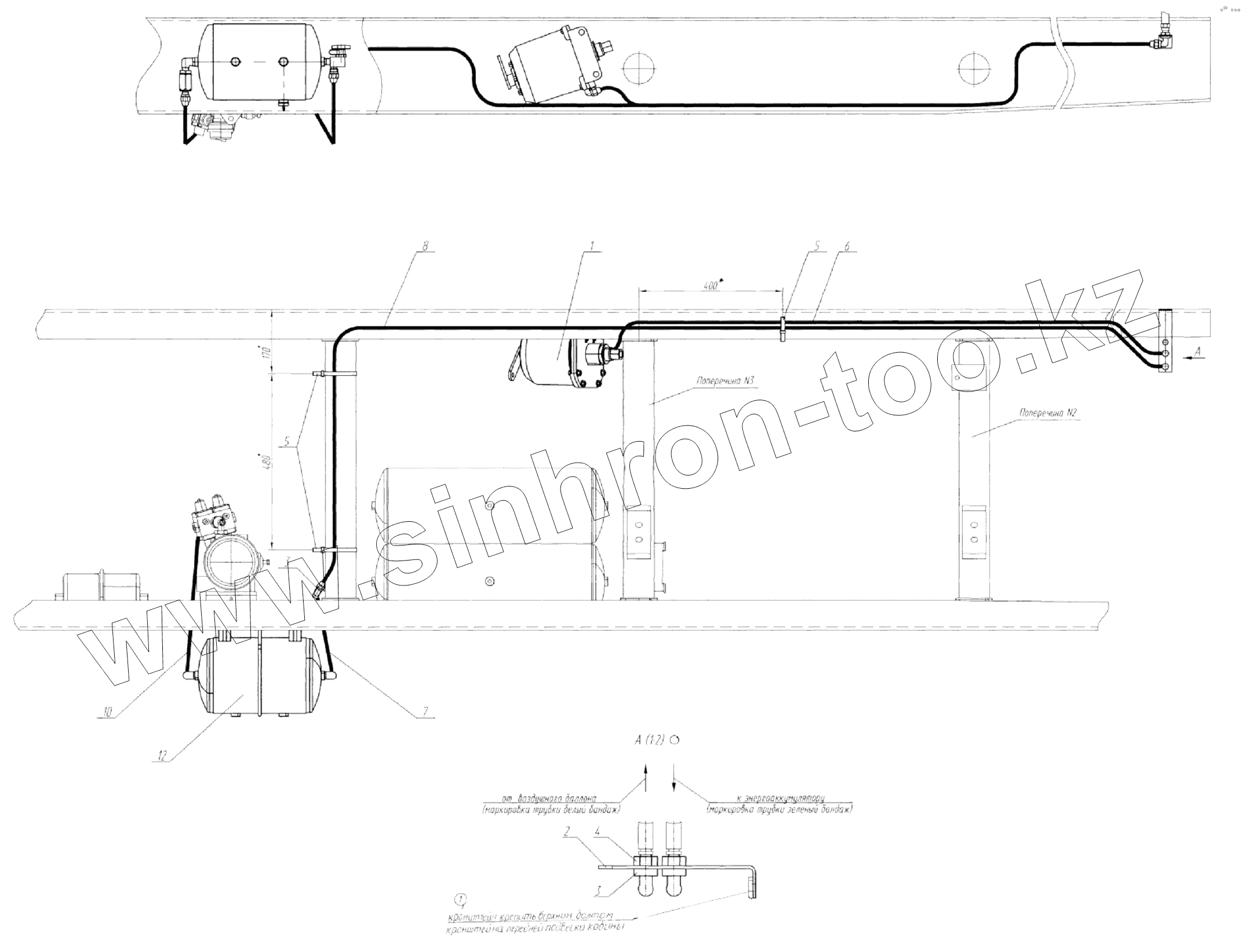 Каталог запасных частей к технике: УралАЗ СПТС УРАЛ-32552. Установка пневмопривода стояночного тормоза