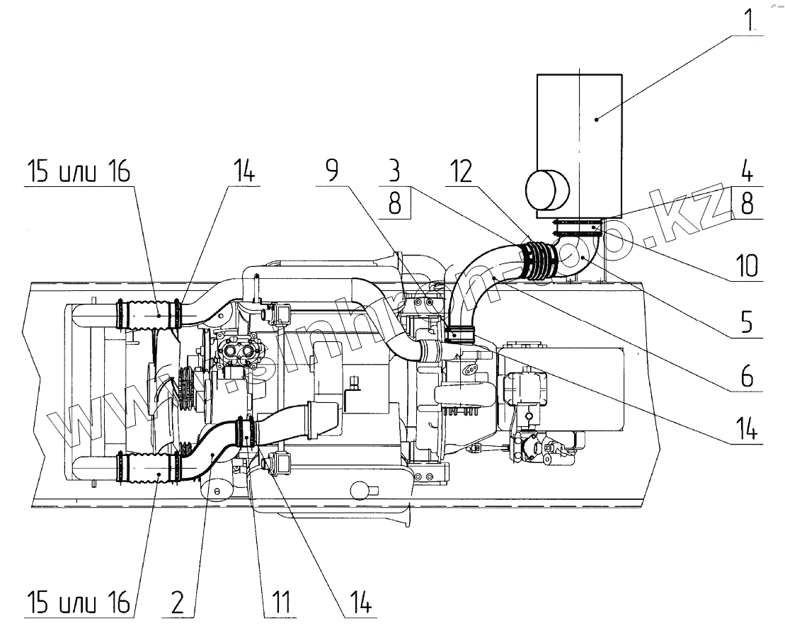 Каталог запасных частей к технике: УралАЗ СПТС УРАЛ-32552. Установка системы питания двигателя воздухом