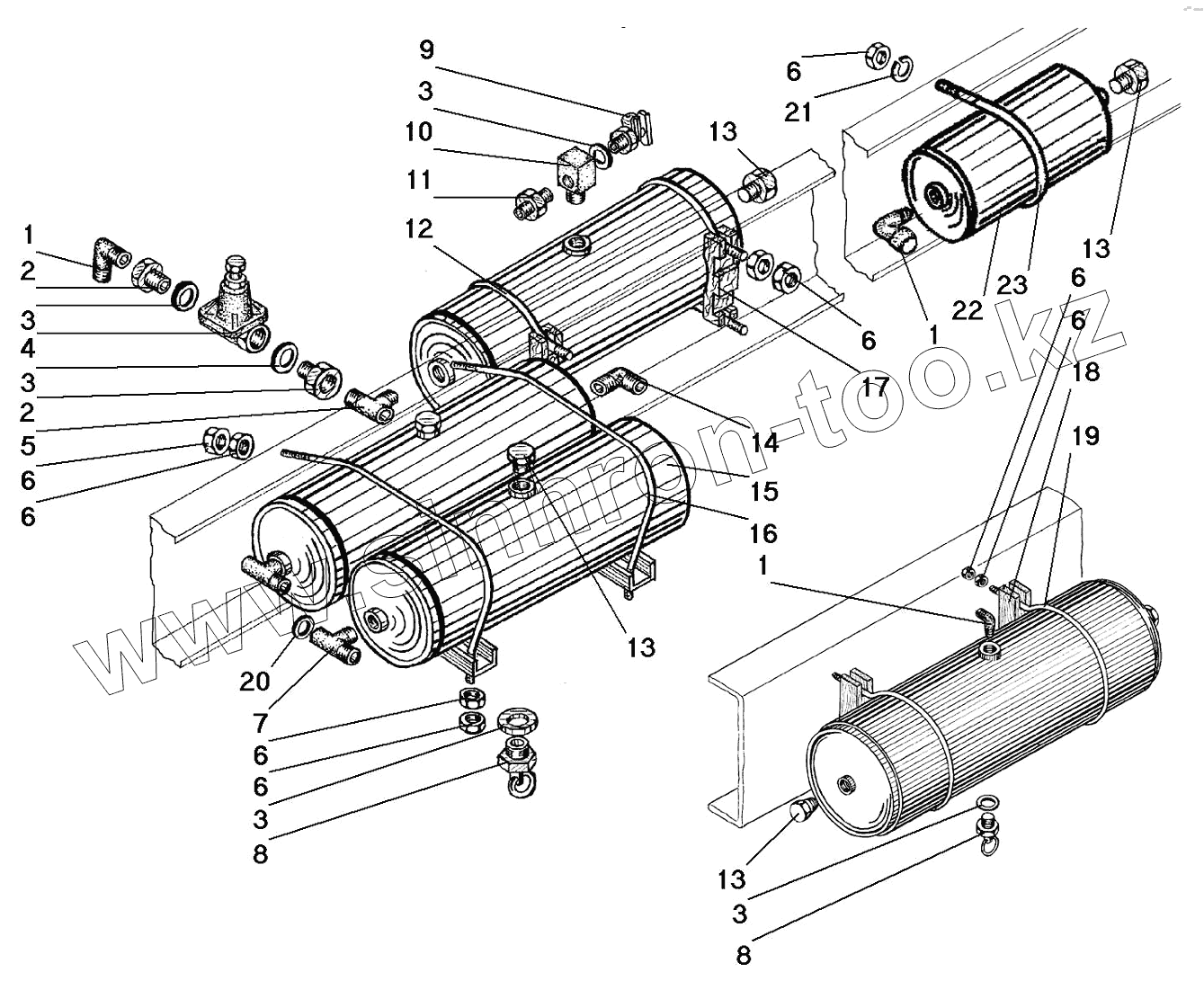Каталог запасных частей к технике: УралАЗ СПТС УРАЛ-32552. Установка воздушных баллонов