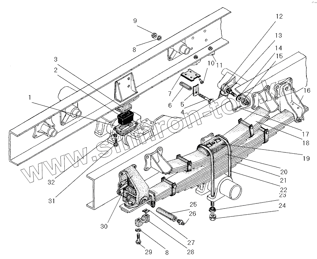 Каталог запасных частей к технике: УралАЗ СПТС УРАЛ-32552. Задняя подвеска