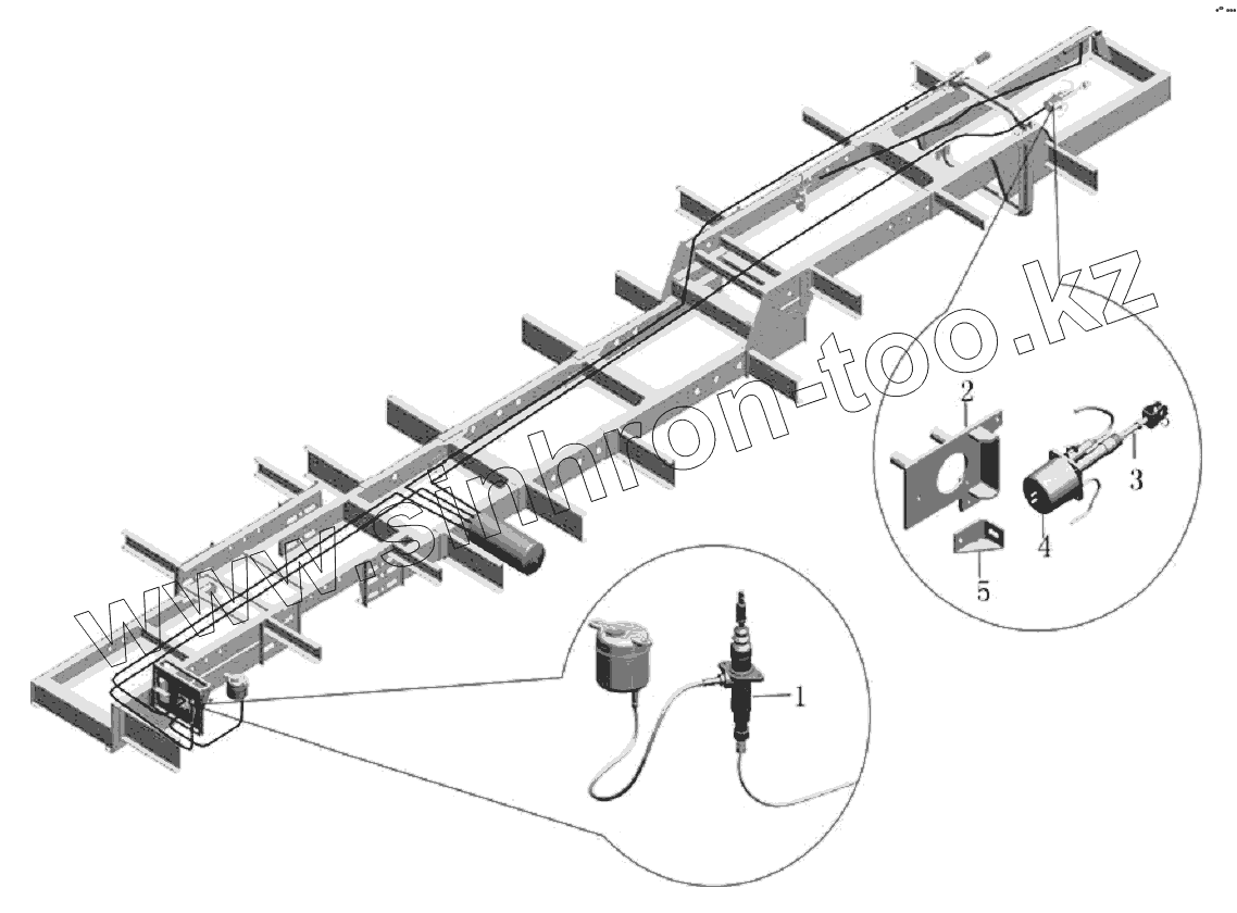 Монтаж топливного бака в сборе (модуль рессоры российского автобуса)