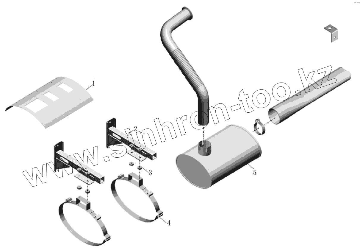 Каталог запасных частей к технике: Yutong Автобус ZK6118HGA. Монтаж глушителя в сборе
