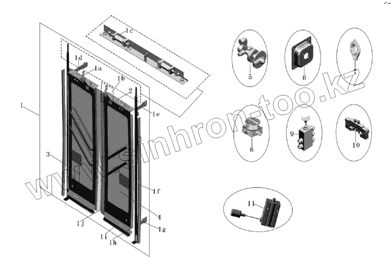 Каталог запасных частей к технике: Yutong Автобус ZK6118HGA. Монтаж передней дверцы в сборе