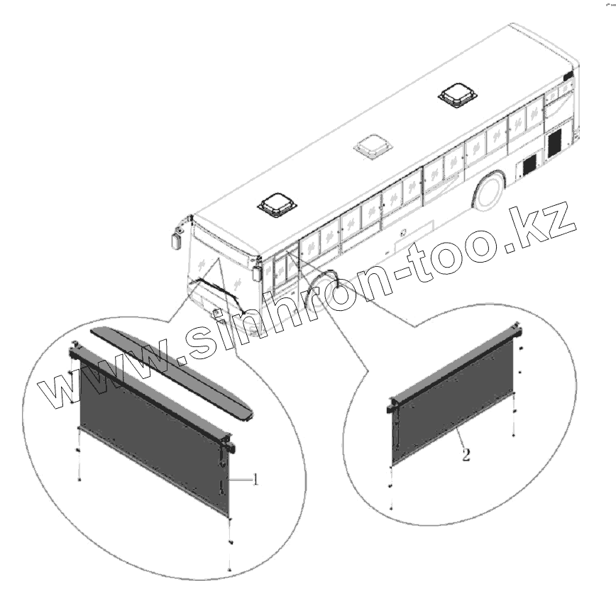 Каталог запасных частей к технике: Yutong Автобус ZK6118HGA. Монтаж солнцезащитная штора в сборе