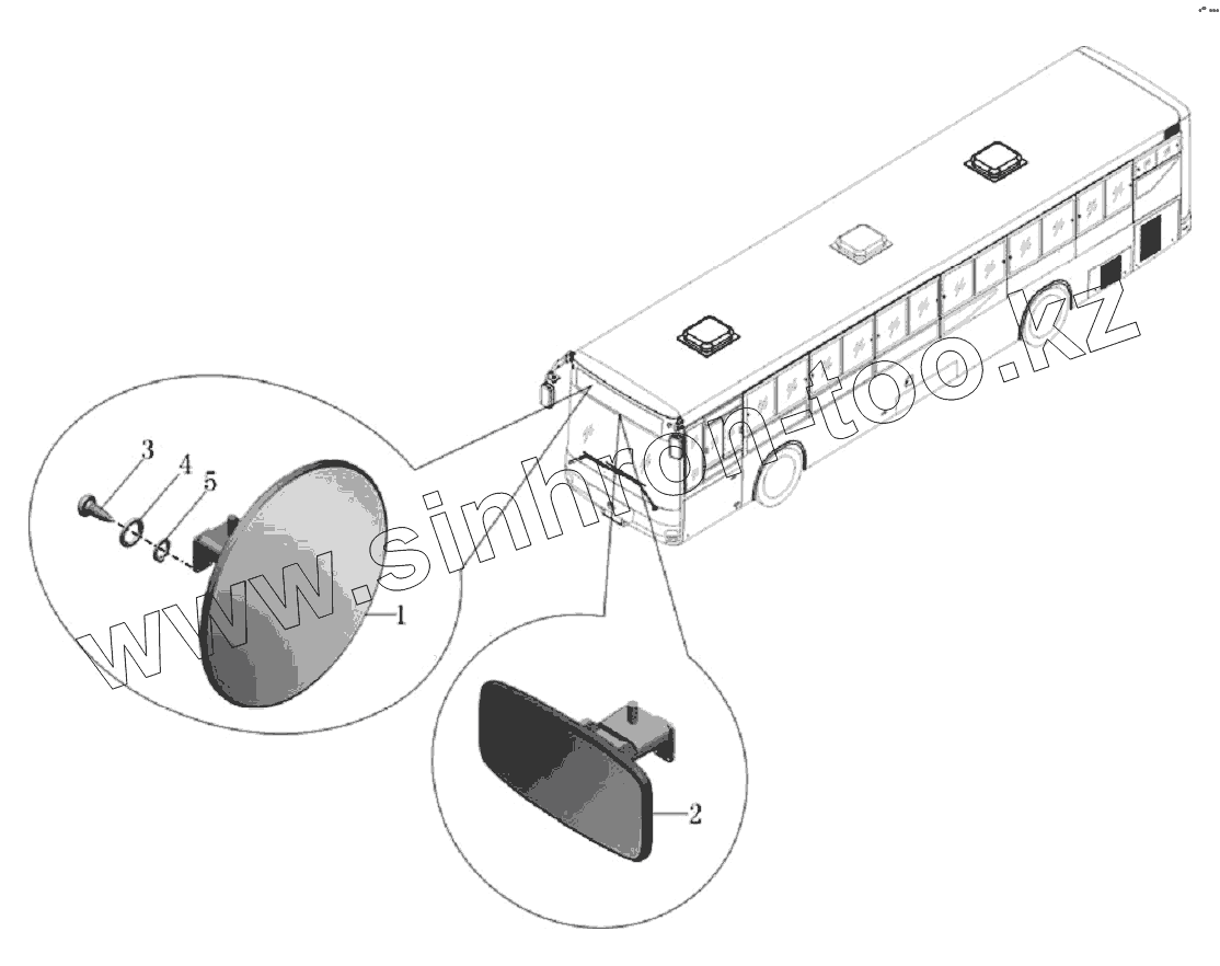 Каталог запасных частей к технике: Yutong Автобус ZK6118HGA. Монтаж зеркала внутреннего вида в сборе