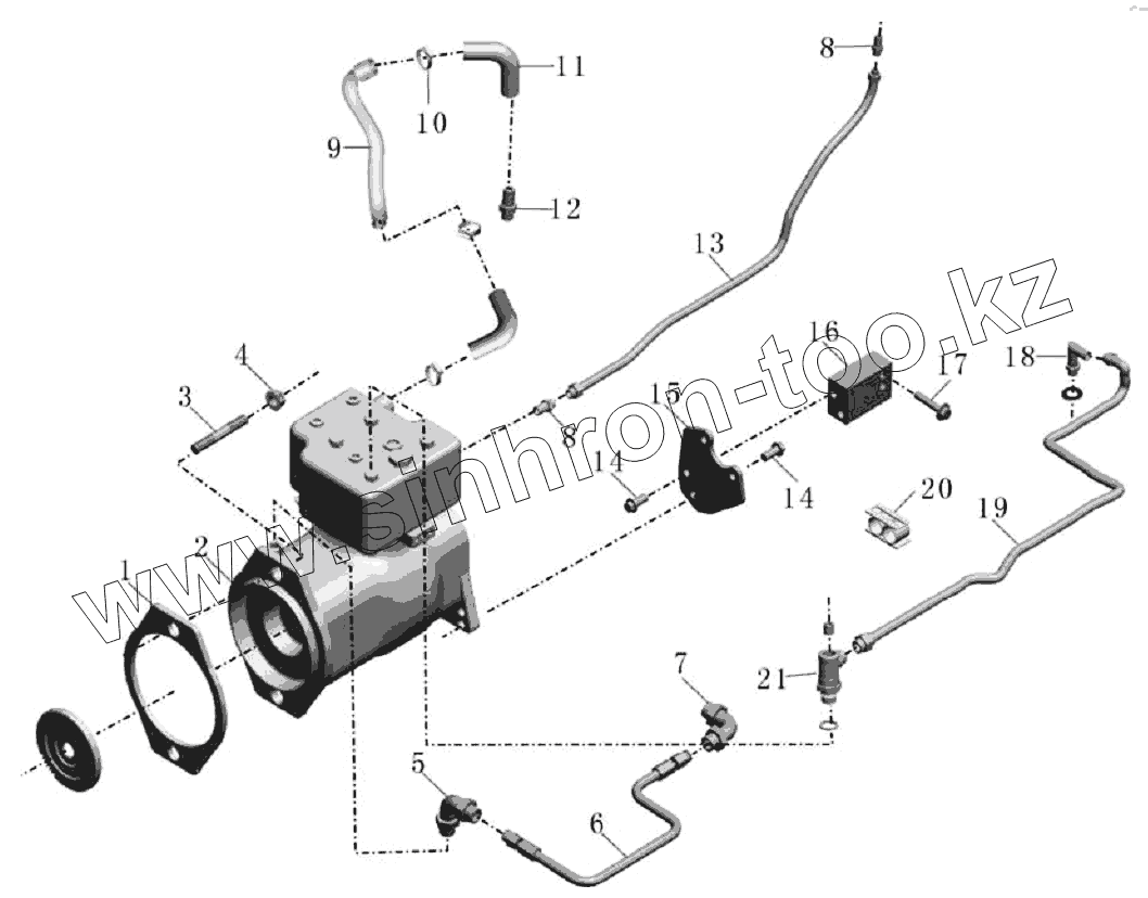 Каталог запасных частей к технике: Yutong Автобус ZK6118HGA. Воздушный компрессор и труба