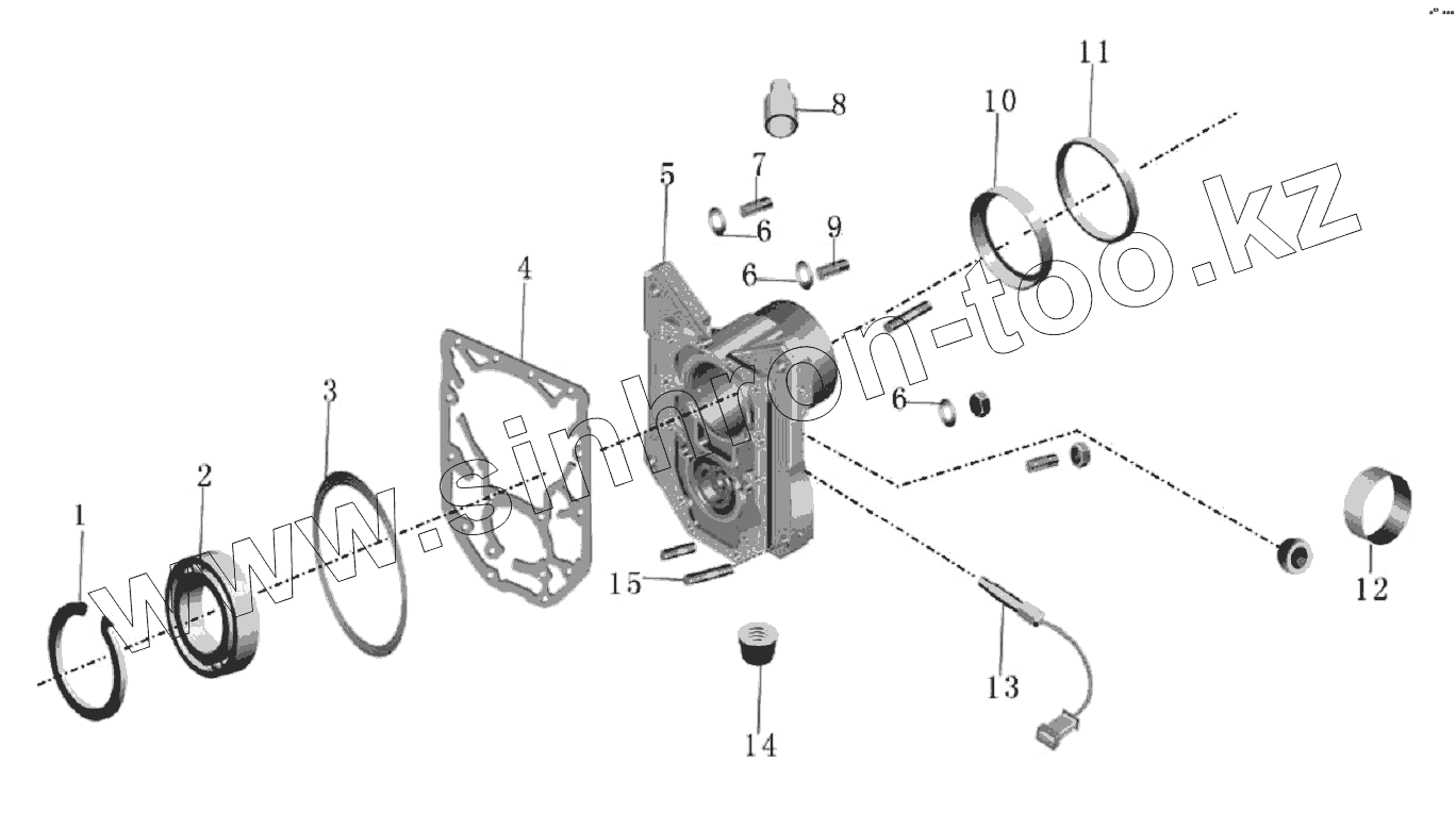 Первичный вал, промежуточный вал, вал задней передачи в сборе