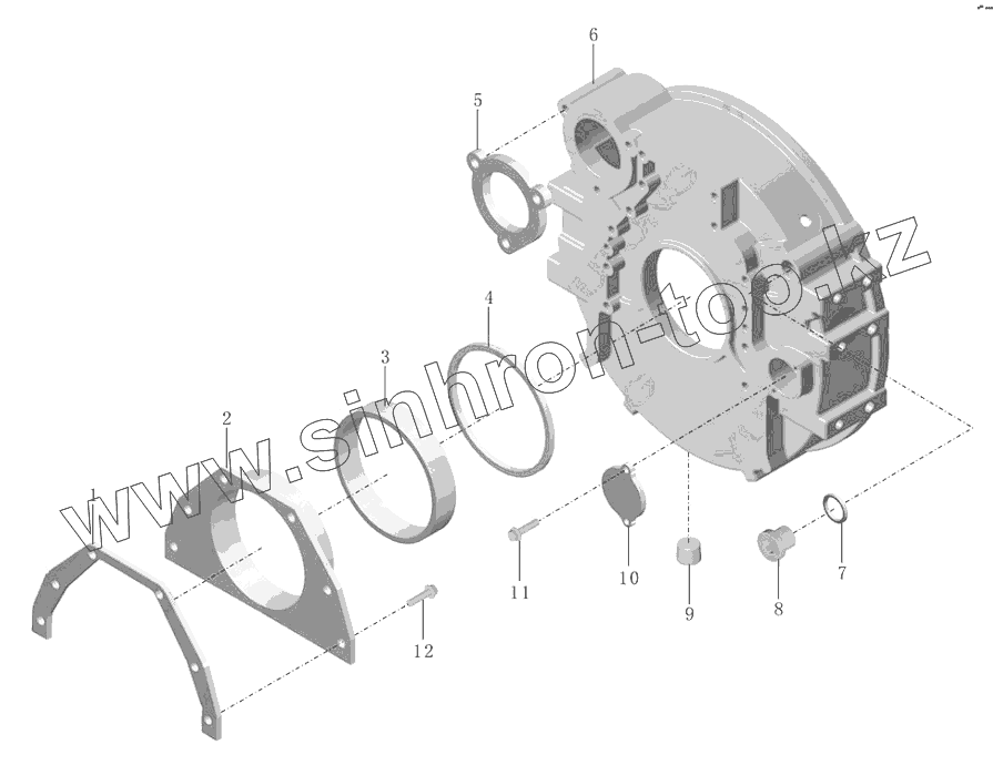 Каталог запасных частей к технике: Yutong Автобус ZK6118HGA (газ). 9601-01450 Корпус маховика и прокладка