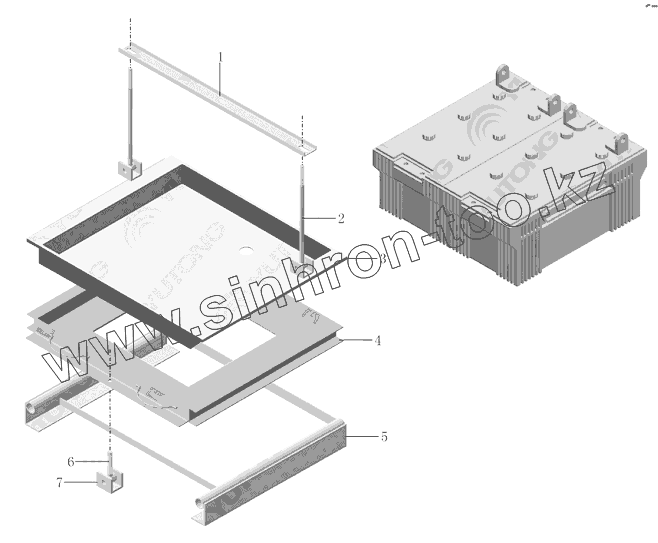 Каталог запасных частей к технике: Yutong Автобус ZK6118HGA (газ). H204-3703-01 Монтаж аккумулятора