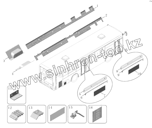Каталог запасных частей к технике: Yutong Автобус ZK6118HGA (газ). H531-5804 Сборка корпуса туннеля