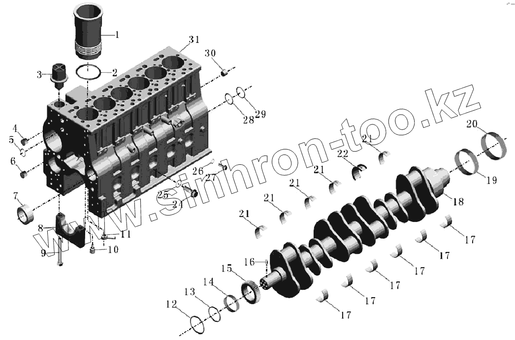 1000-00608 Блок цилиндра и коленвал