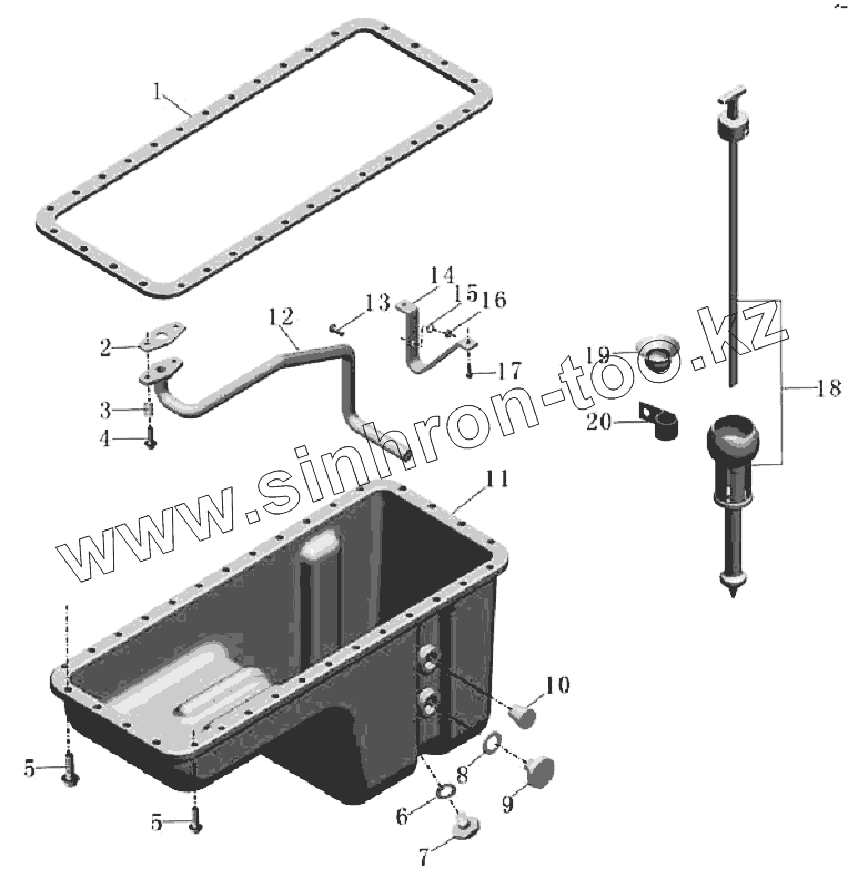 Каталог запасных частей к технике: Yutong Автобус ZK6119HA-3. 1000-00608 Связка масляного поддона