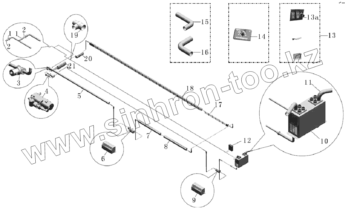 Каталог запасных частей к технике: Yutong Автобус ZK6119HA-3. B106-8101 Водяное отопление в сборе