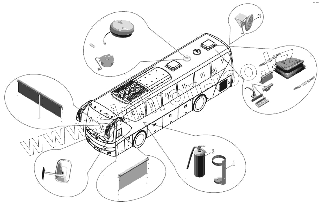 Каталог запасных частей к технике: Yutong Автобус ZK6119HA-3. B106-8211 Монтаж огнетушителя в сборе
