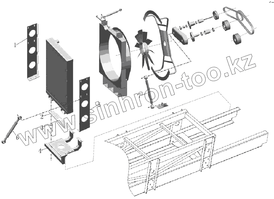 Каталог запасных частей к технике: Yutong Автобус ZK6119HA-3. PB21-1302-05 Подвеска радиатора