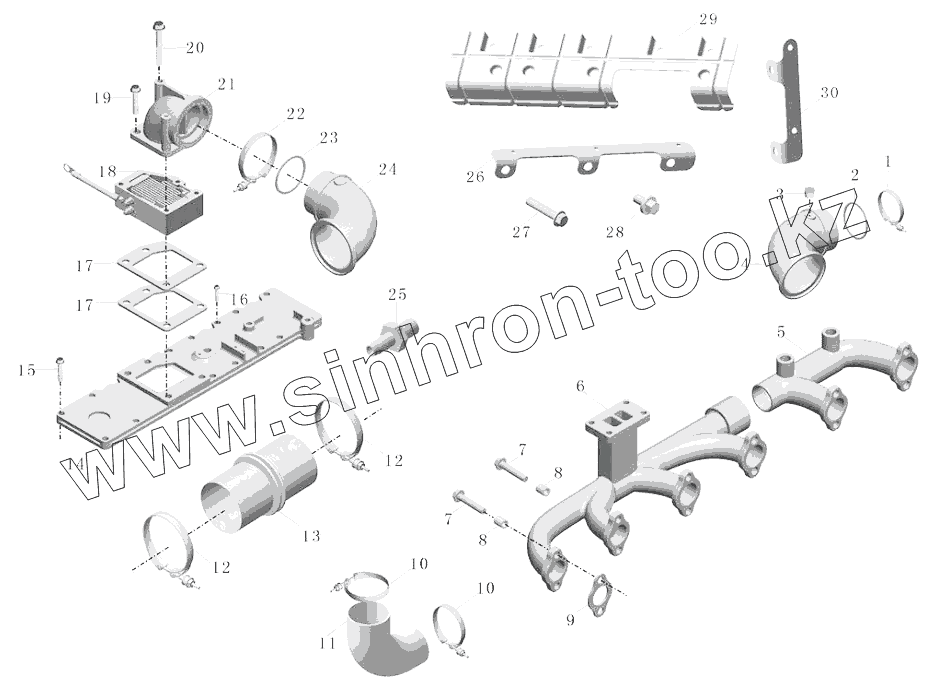 Каталог запасных частей к технике: Yutong Автобус ZK6121HQ. 1000-03432-09 Группа впускной и выпускной трубы